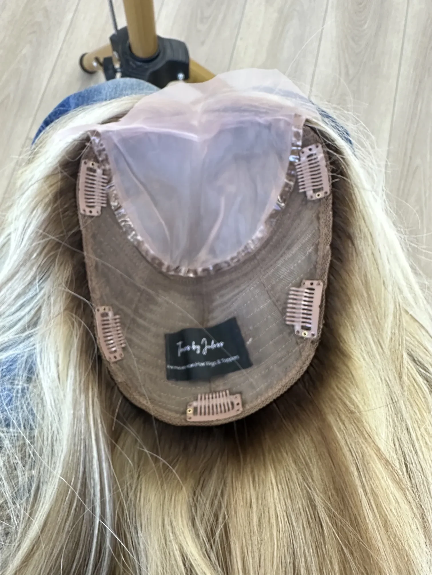 TBJ hand-tied closed lace top toppers are clipped to the top of your head. The front of the topper can be blended with your bio hairline or brought all the way forward to give a natural look. Toppers are a top crown coverage extension