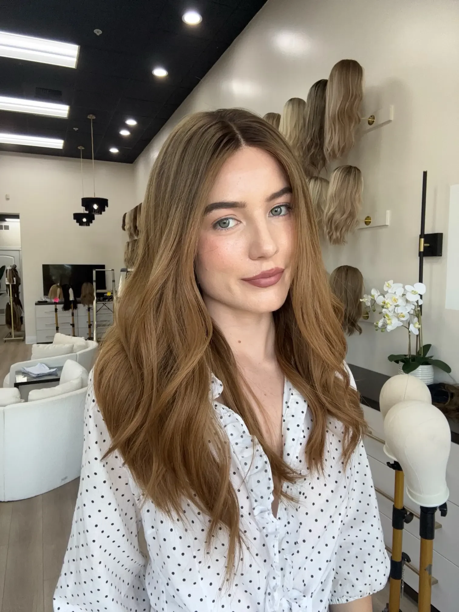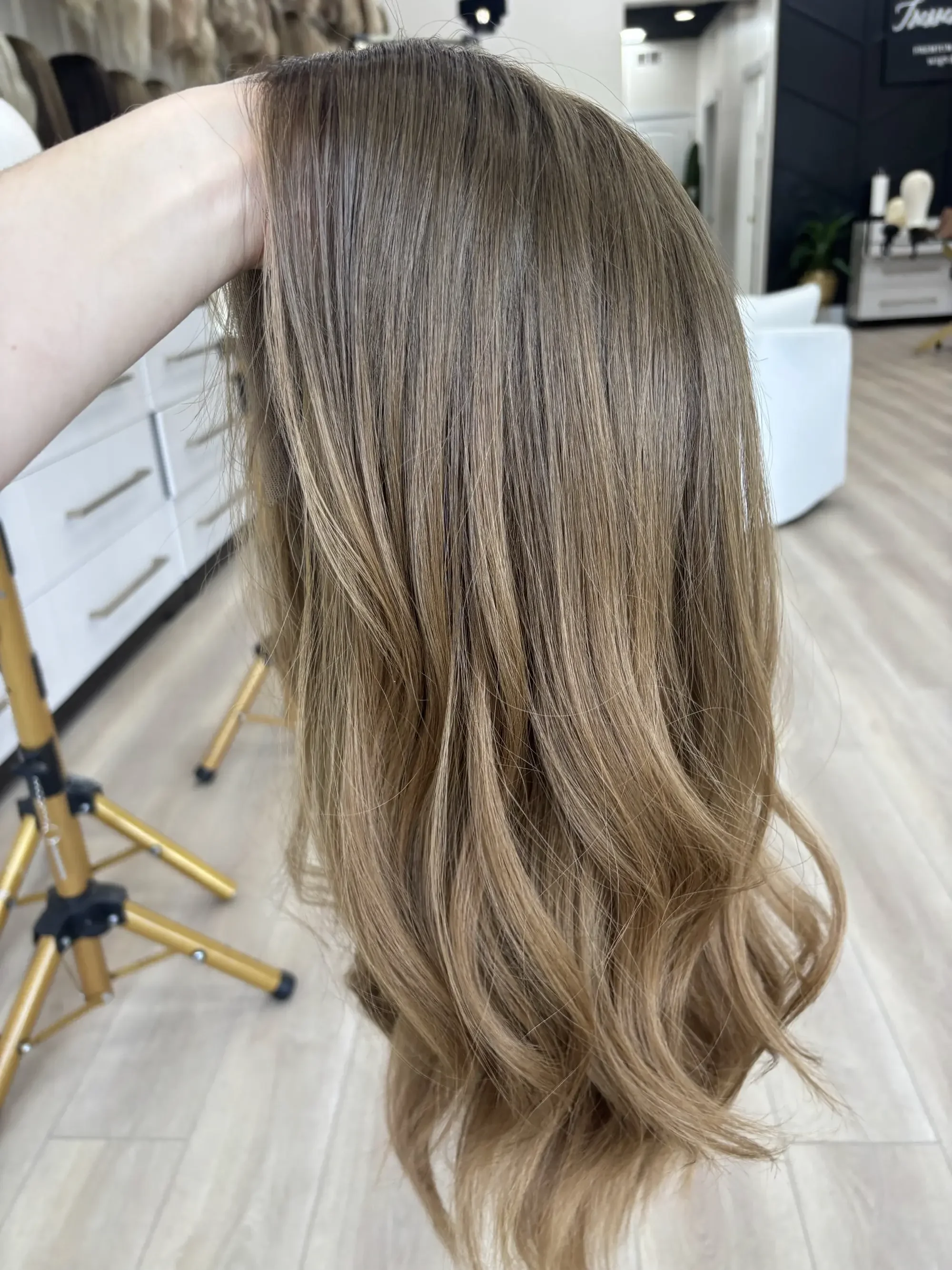 • The hair length of our wigs is measured from the top middle crown on the lace/silk top to the longest ends. For instance, on a 3.5x5 lace front, the measurement is taken 2.5” back from the hairline to the longest ends. Our wigs are custom colored using professional-grade products. It's normal for some color to rinse out during the initial washes. While you can deposit color onto the hair, we advise against lightening it since the hair has already undergone a lifting process to achieve its blonde shade. If you decide to have your wig colored by a stylist, please note that Tresses by Juless (TBJ) will not be held responsible for any potential damage. We recommend only experienced wig colorists for such tasks.