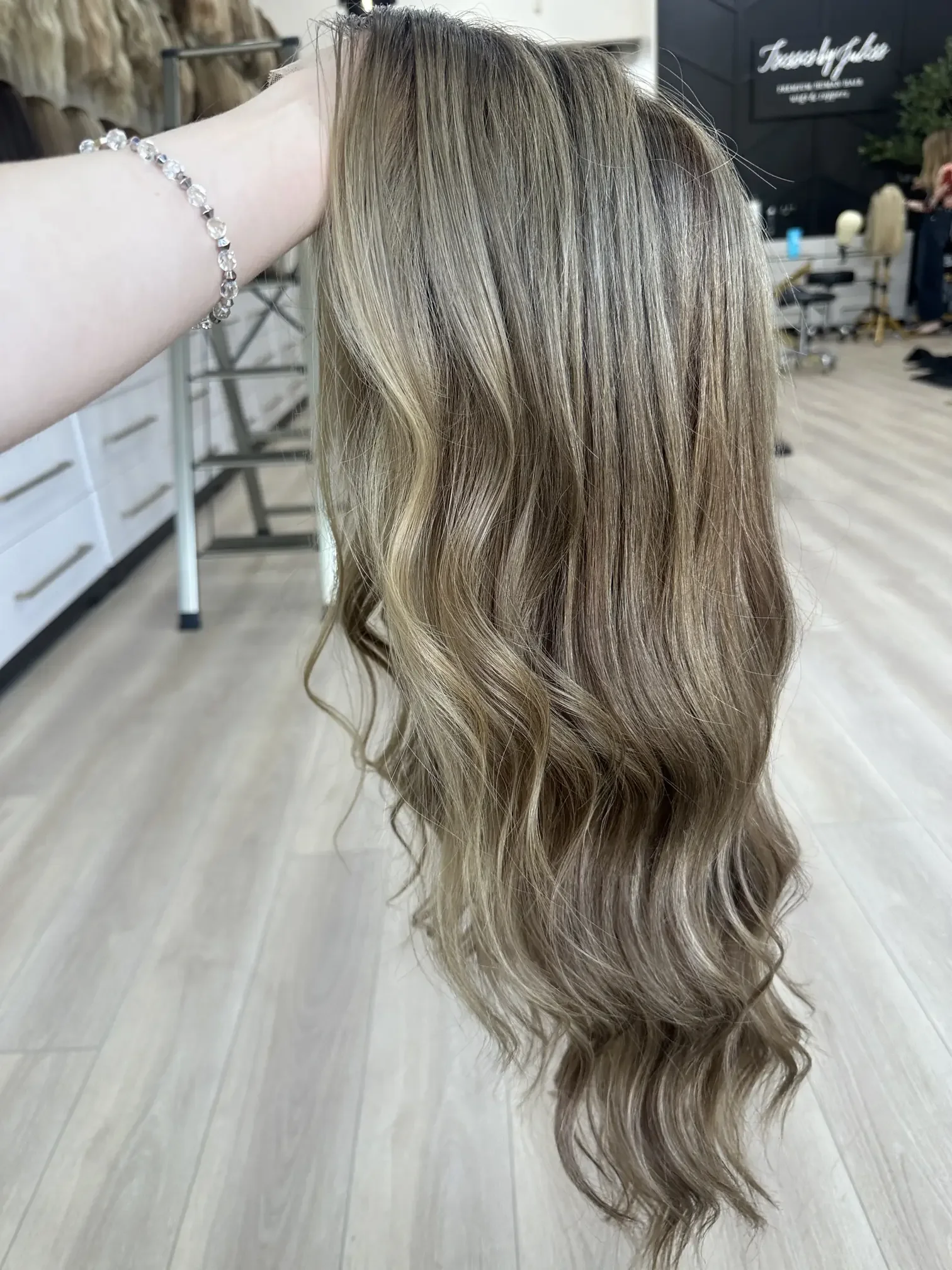 • The hair length of our wigs is measured from the top middle crown on the lace/silk top to the longest ends. For instance, on a 3.5x5 lace front, the measurement is taken 2.5” back from the hairline to the longest ends. Our wigs are custom colored using professional-grade products. It's normal for some color to rinse out during the initial washes. While you can deposit color onto the hair, we advise against lightening it since the hair has already undergone a lifting process to achieve its blonde shade. If you decide to have your wig colored by a stylist, please note that Tresses by Juless (TBJ) will not be held responsible for any potential damage. We recommend only experienced wig colorists for such tasks.
