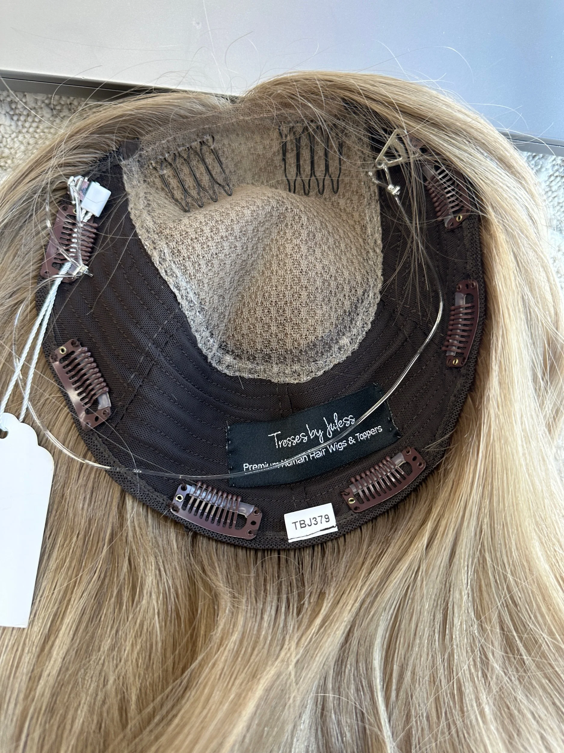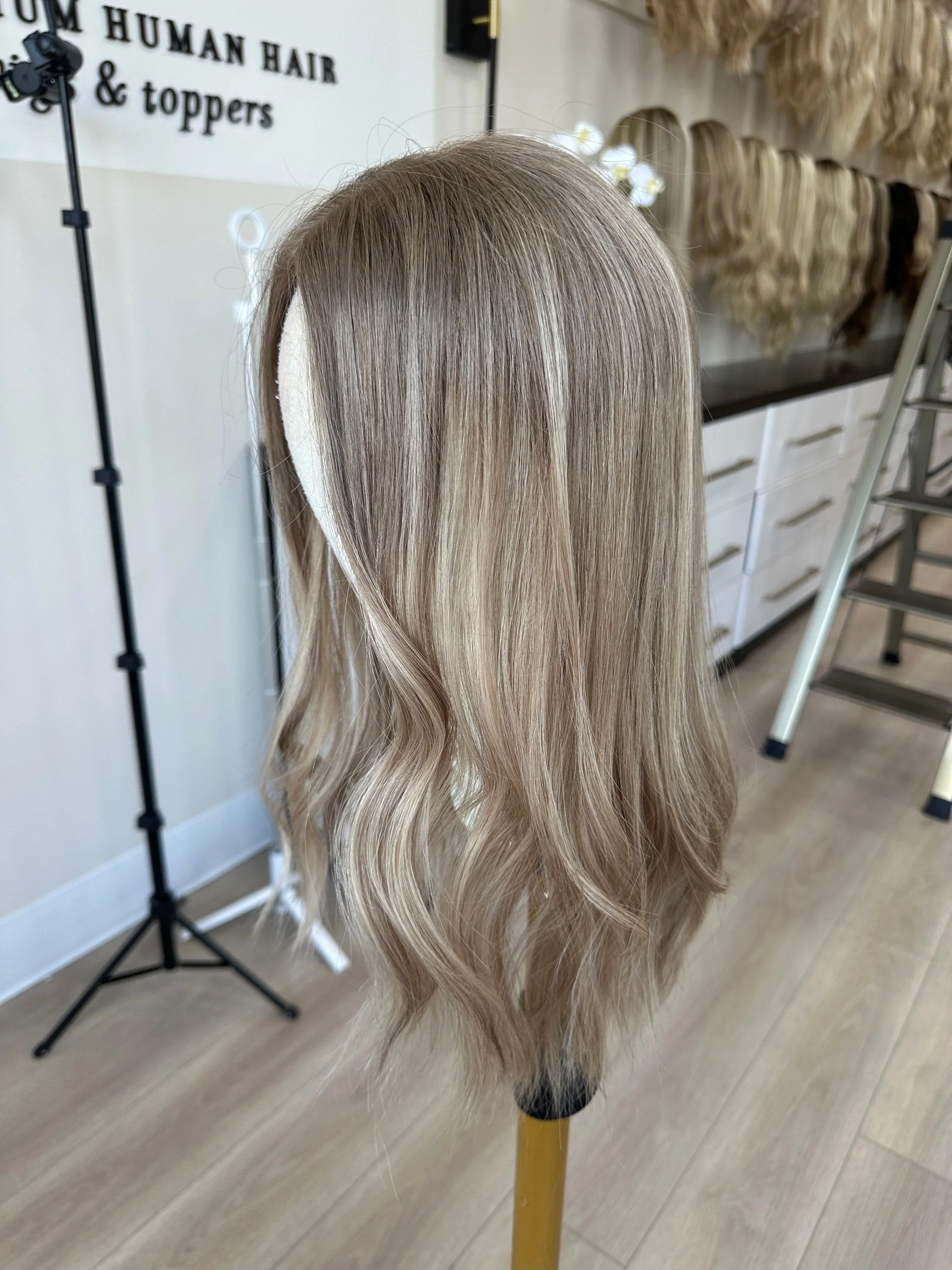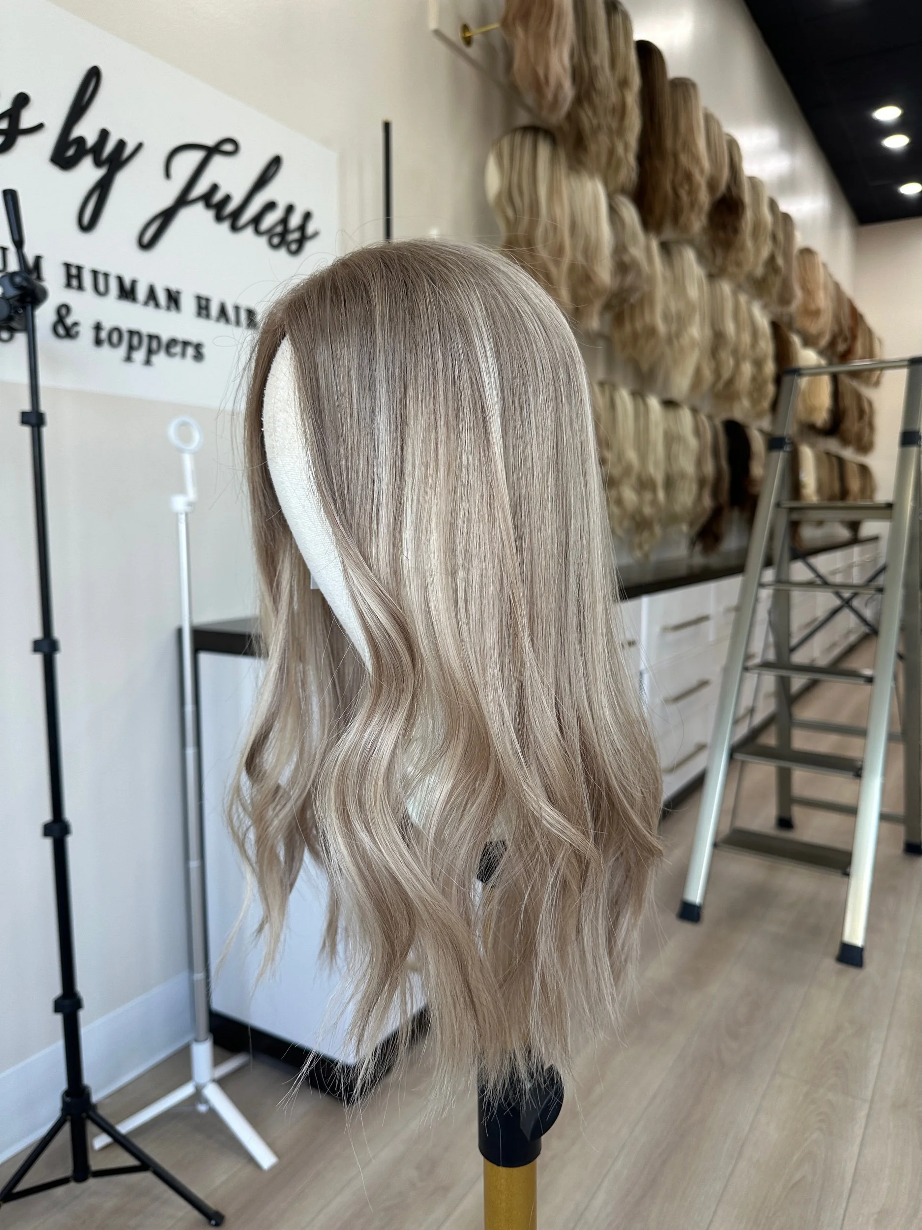 • The hair length of our wigs is measured from the top middle crown on the lace/silk top to the longest ends. For instance, on a 3.5x5 lace front, the measurement is taken 2.5” back from the hairline to the longest ends. Our wigs are custom colored using professional-grade products. It's normal for some color to rinse out during the initial washes. While you can deposit color onto the hair, we advise against lightening it since the hair has already undergone a lifting process to achieve its blonde shade. If you decide to have your wig colored by a stylist, please note that Tresses by Juless (TBJ) will not be held responsible for any potential damage. We recommend only experienced wig colorists for such tasks.