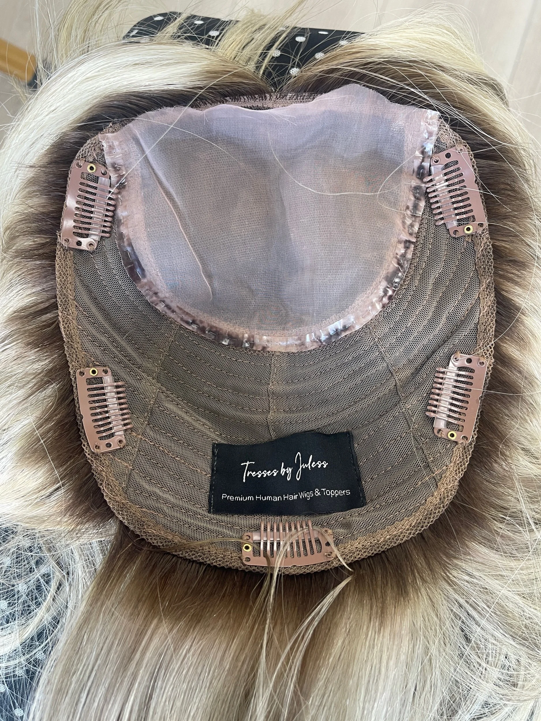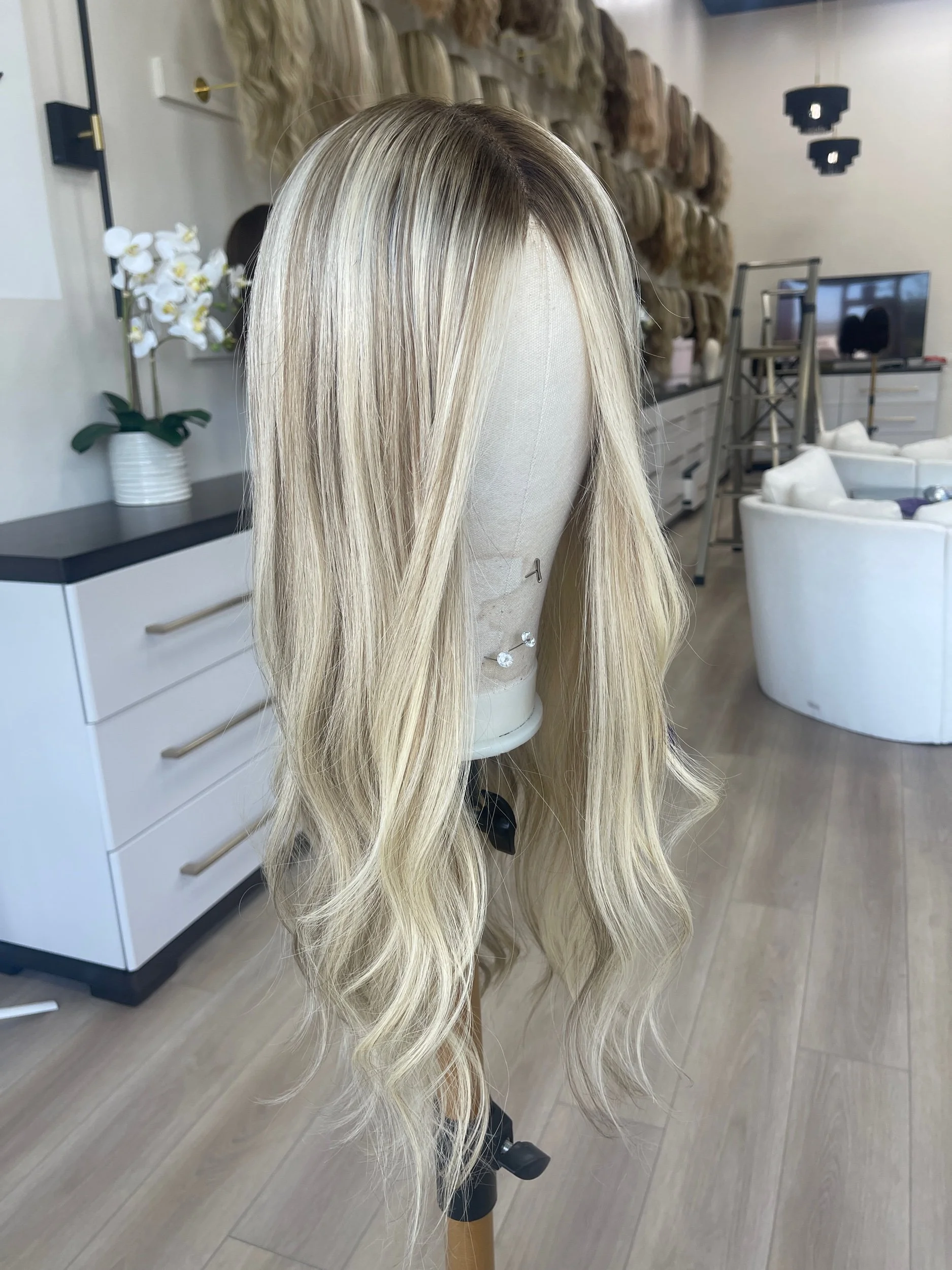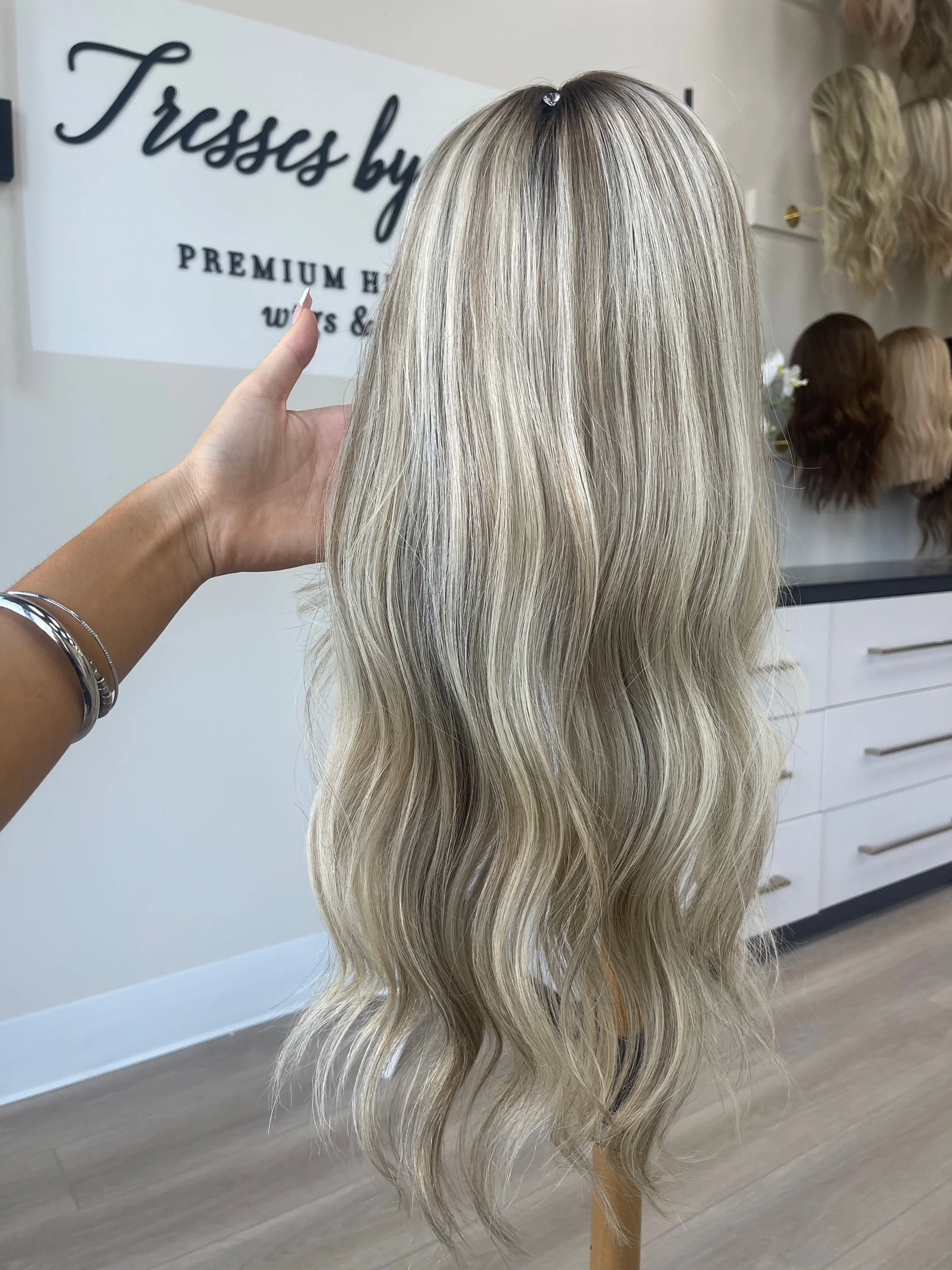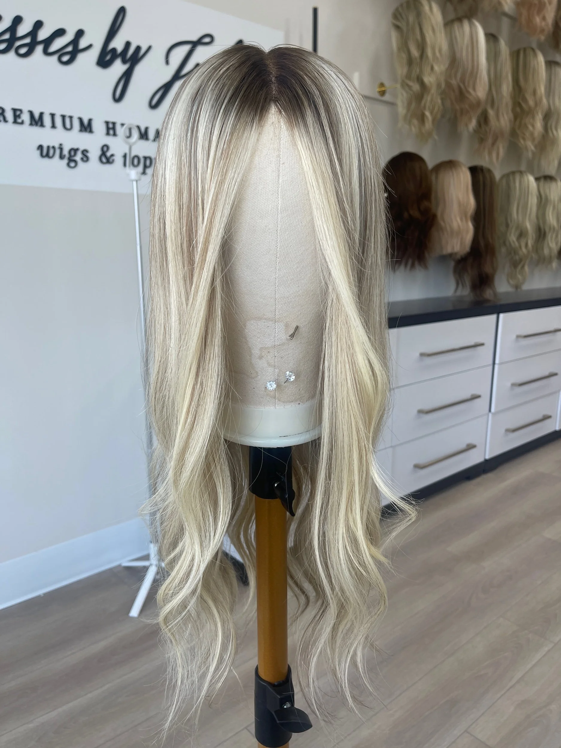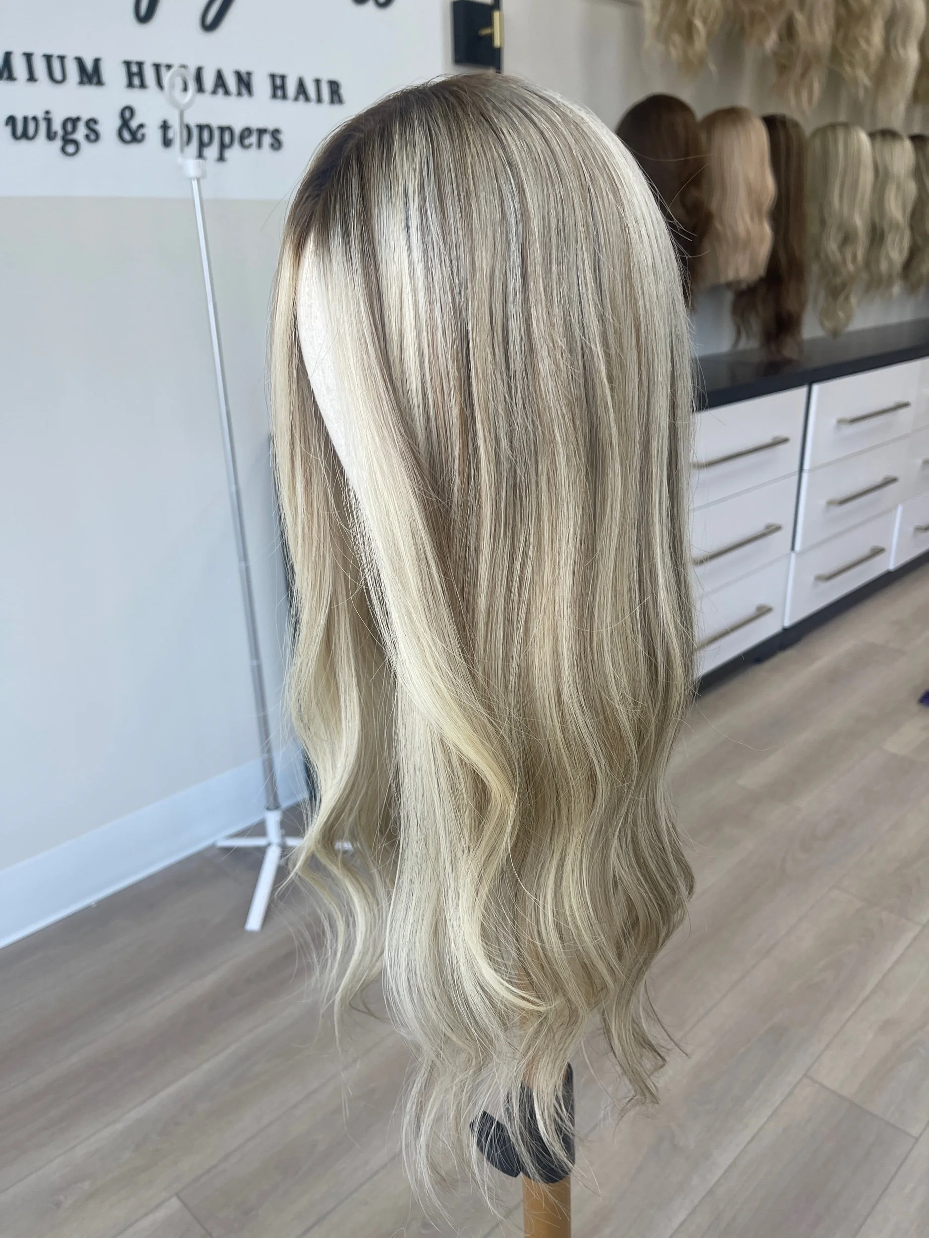 • The hair length of our wigs is measured from the top middle crown on the lace/silk top to the longest ends. For instance, on a 3.5x5 lace front, the measurement is taken 2.5” back from the hairline to the longest ends. Our wigs are custom colored using professional-grade products. It's normal for some color to rinse out during the initial washes. While you can deposit color onto the hair, we advise against lightening it since the hair has already undergone a lifting process to achieve its blonde shade. If you decide to have your wig colored by a stylist, please note that Tresses by Juless (TBJ) will not be held responsible for any potential damage. We recommend only experienced wig colorists for such tasks.
