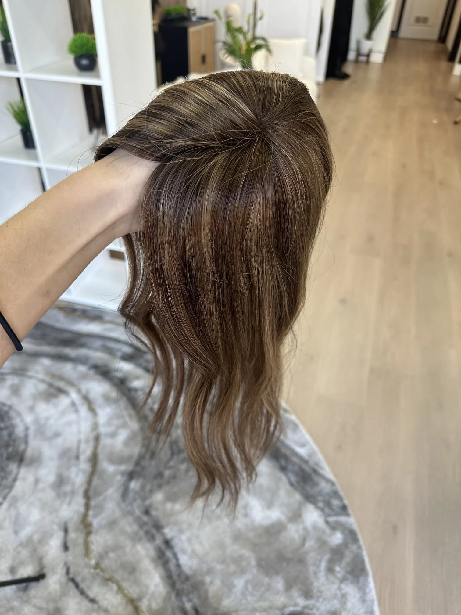 • TBJ hand-tied closed lace top toppers are clipped to the top of your head. The front of the topper can be blended with your bio hairline or brought all the way forward to give a natural look. Toppers are a top crown coverage extension