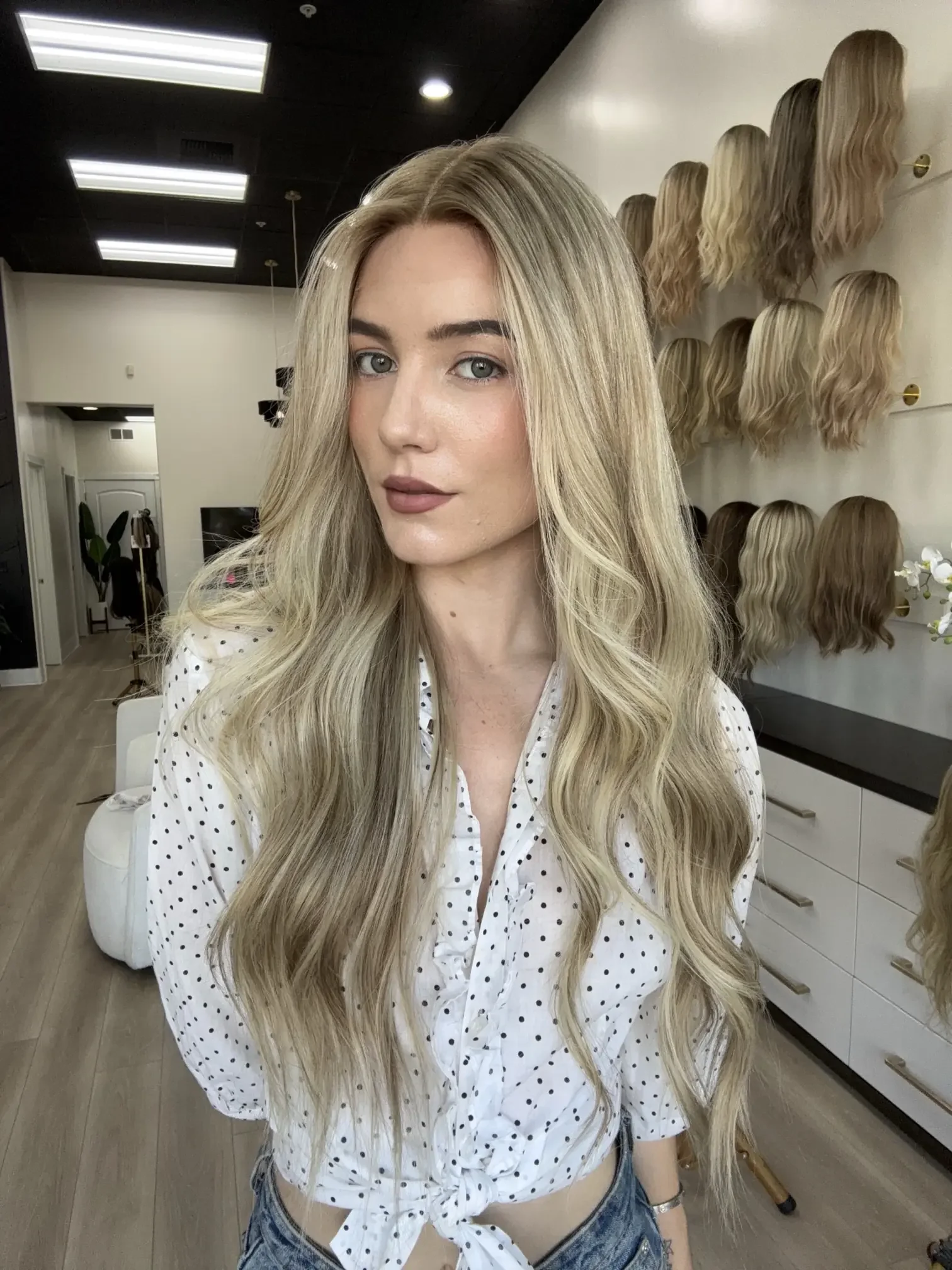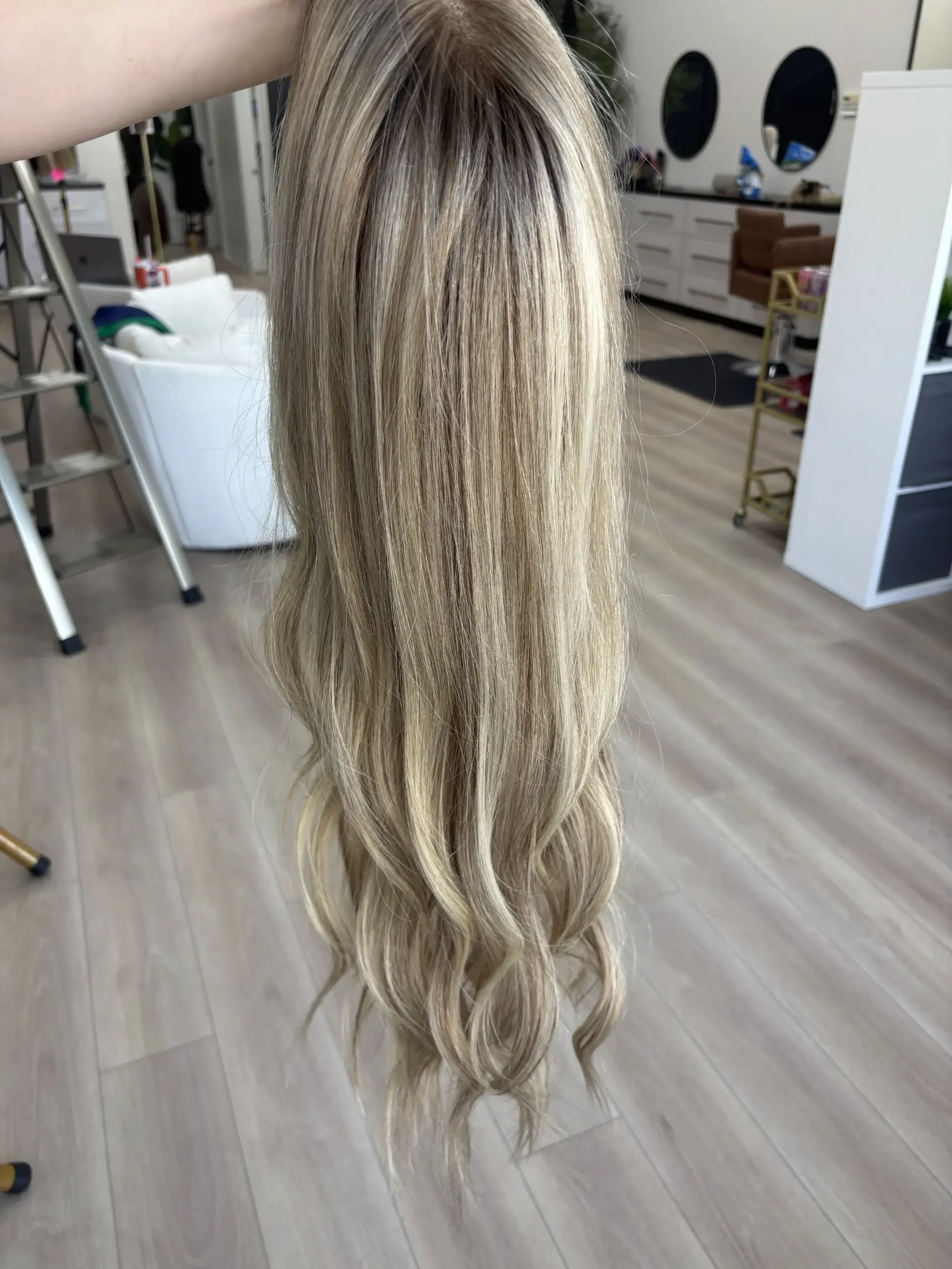 • The hair length of our wigs is measured from the top middle crown on the lace/silk top to the longest ends. For instance, on a 3.5x5 lace front, the measurement is taken 2.5” back from the hairline to the longest ends. Our wigs are custom colored using professional-grade products. It's normal for some color to rinse out during the initial washes. While you can deposit color onto the hair, we advise against lightening it since the hair has already undergone a lifting process to achieve its blonde shade. If you decide to have your wig colored by a stylist, please note that Tresses by Juless (TBJ) will not be held responsible for any potential damage. We recommend only experienced wig colorists for such tasks.