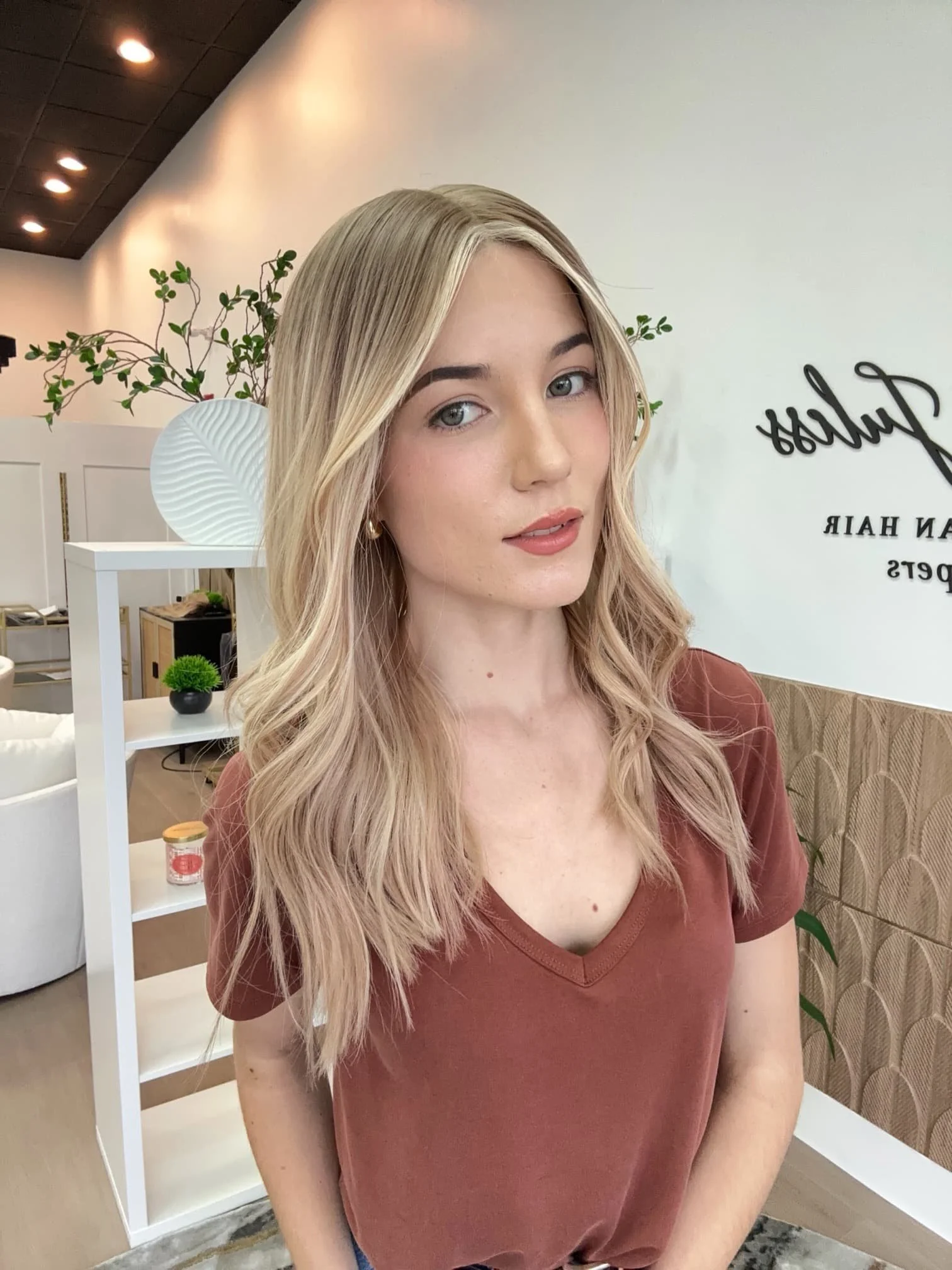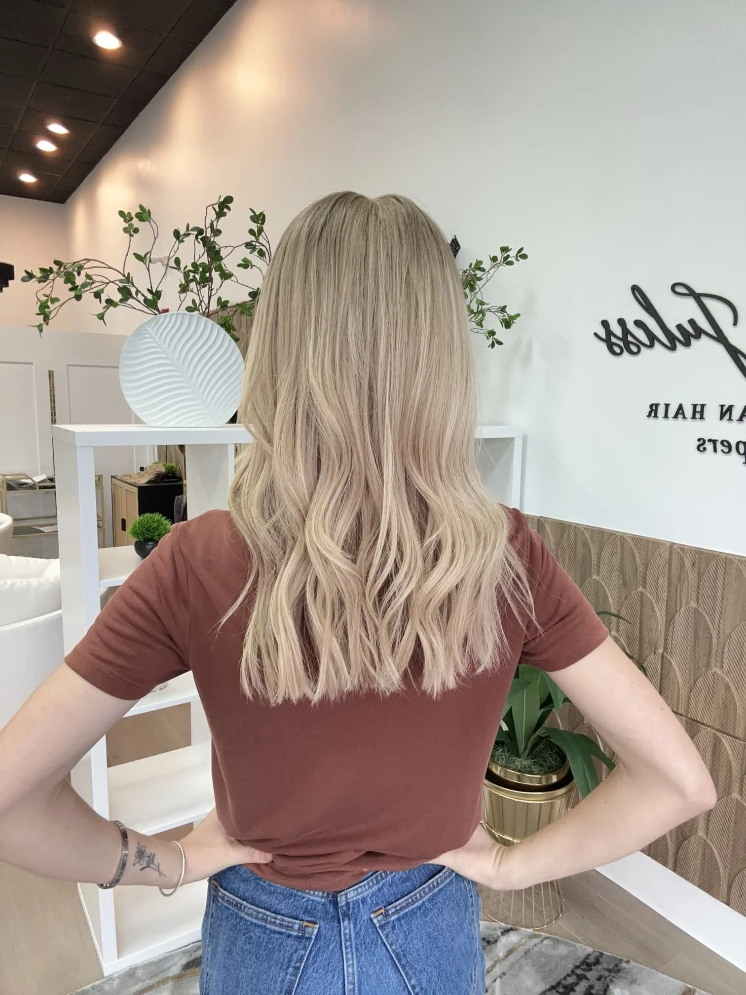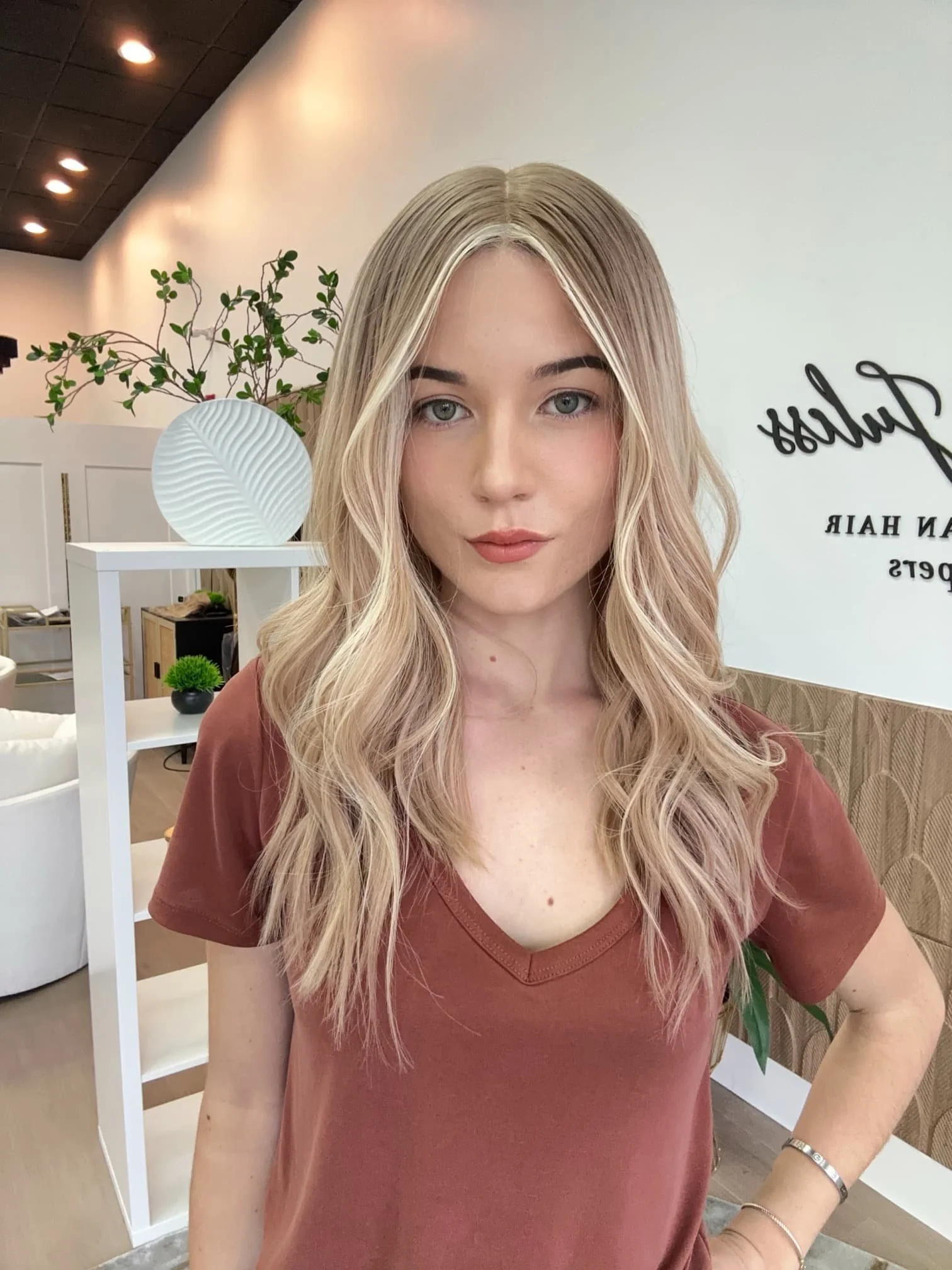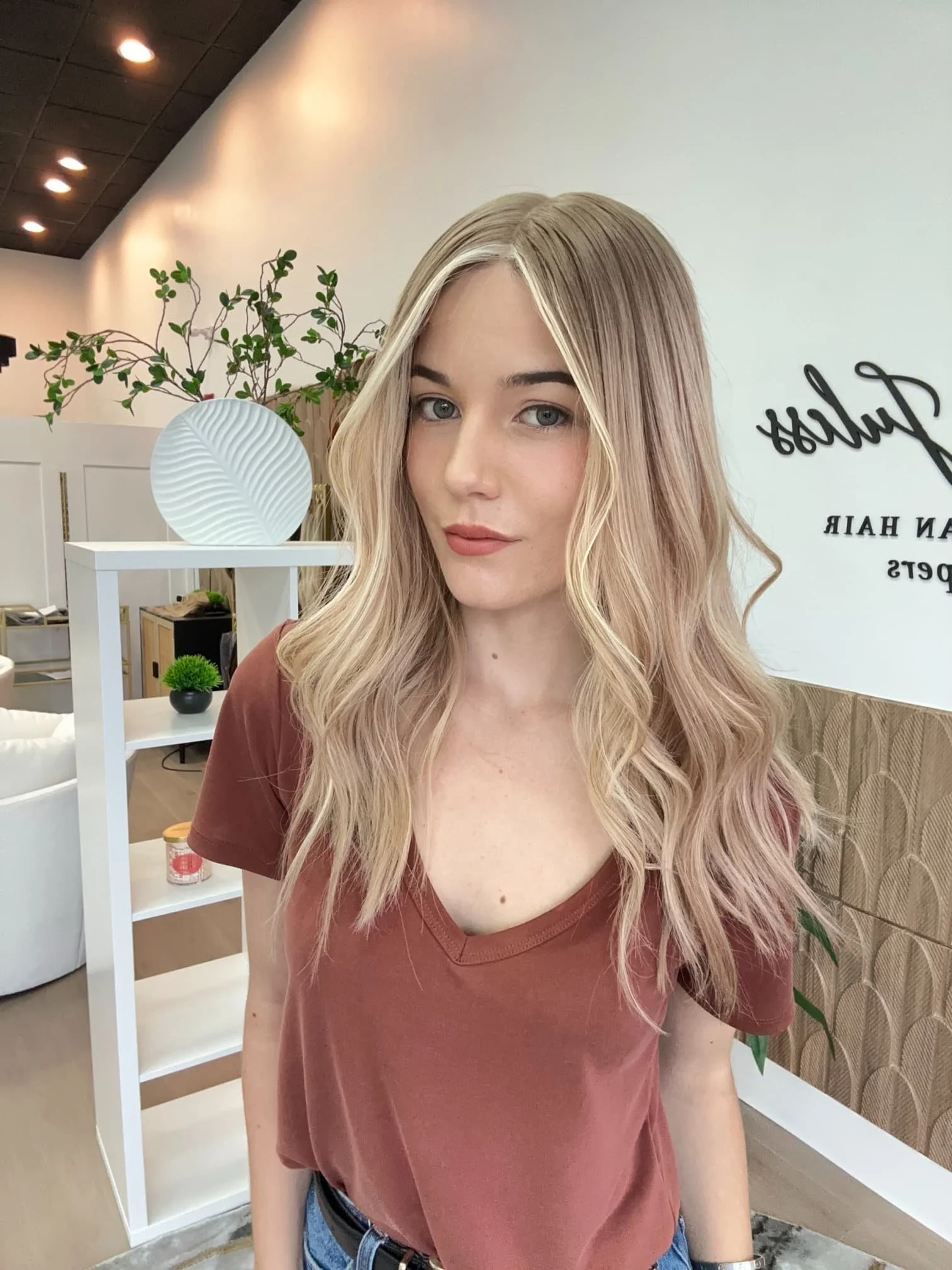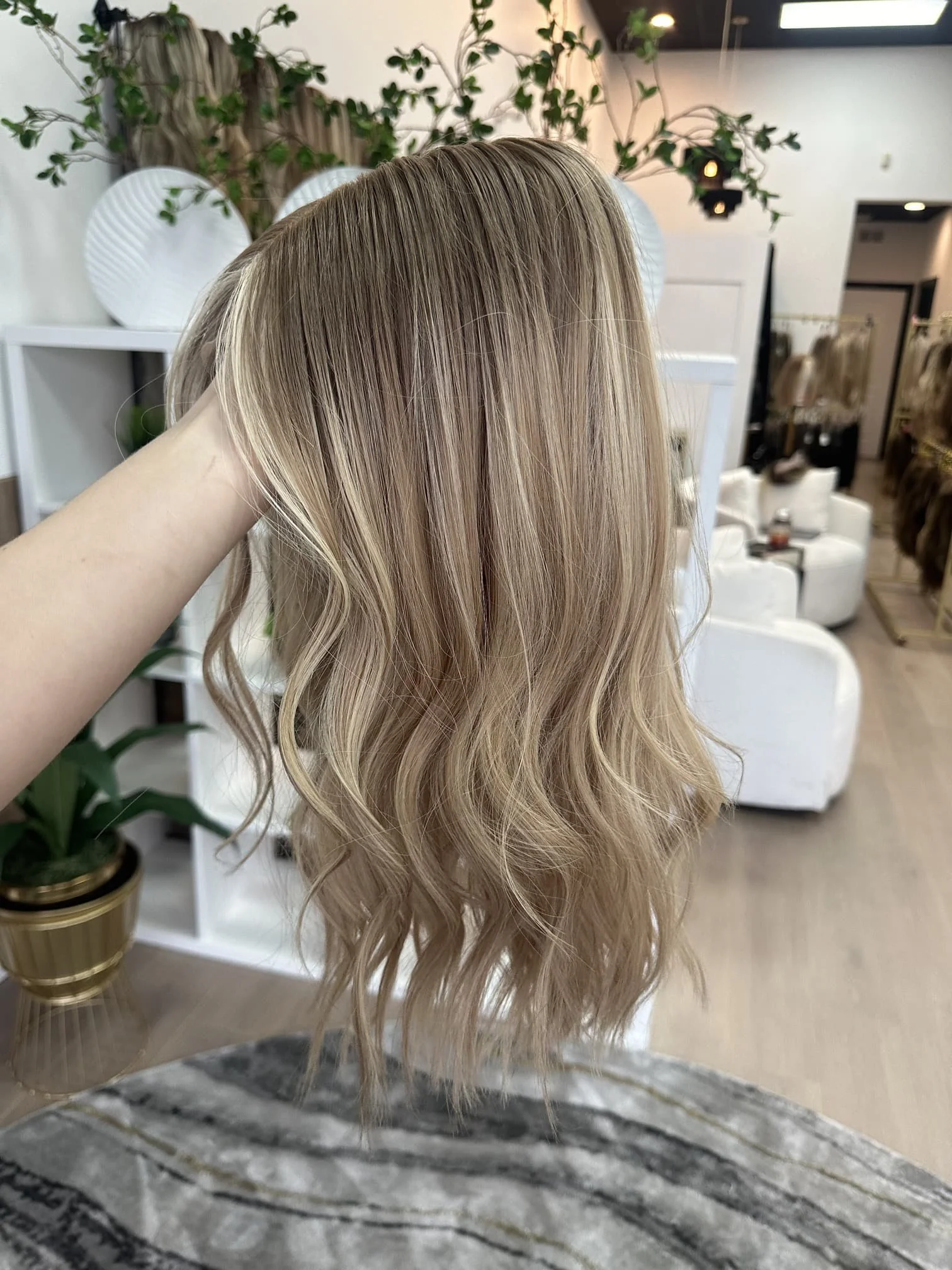 • The hair length of our wigs is measured from the top middle crown on the lace/silk top to the longest ends. For instance, on a 3.5x5 lace front, the measurement is taken 2.5” back from the hairline to the longest ends. Our wigs are custom colored using professional-grade products. It's normal for some color to rinse out during the initial washes. While you can deposit color onto the hair, we advise against lightening it since the hair has already undergone a lifting process to achieve its blonde shade. If you decide to have your wig colored by a stylist, please note that Tresses by Juless (TBJ) will not be held responsible for any potential damage. We recommend only experienced wig colorists for such tasks.