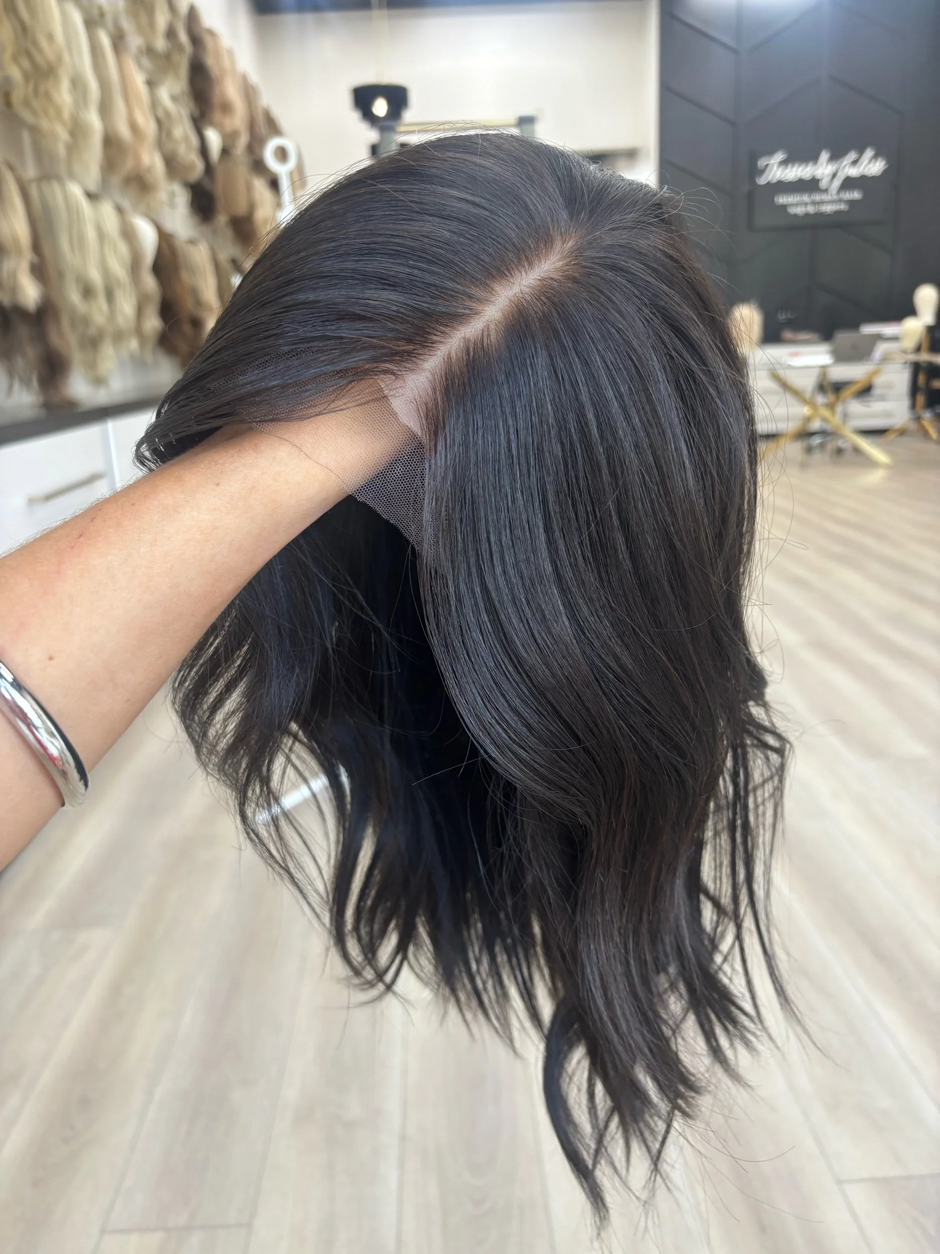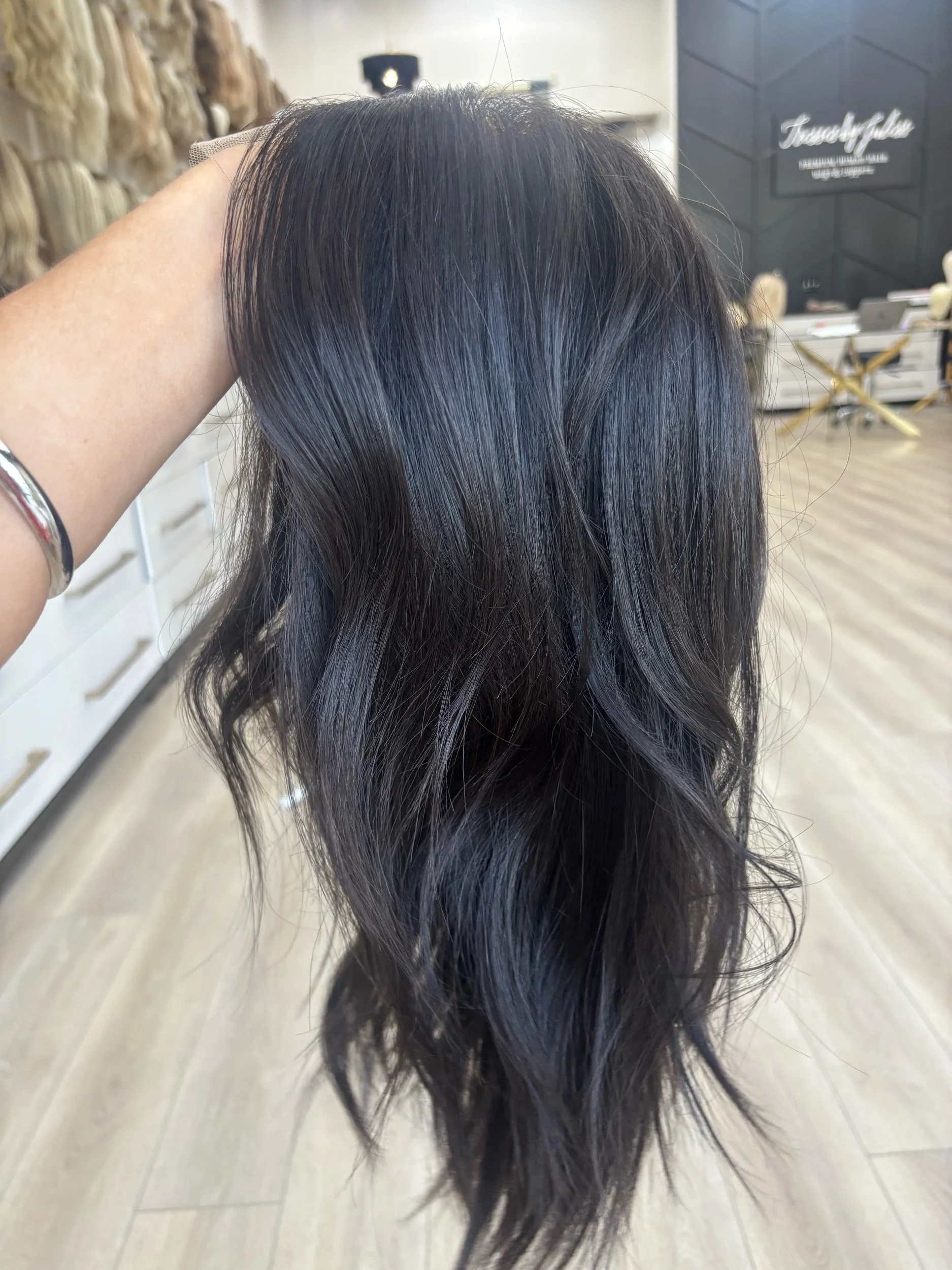 • The hair length of our wigs is measured from the top middle crown on the lace/silk top to the longest ends. For instance, on a 3.5x5 lace front, the measurement is taken 2.5” back from the hairline to the longest ends. Our wigs are custom colored using professional-grade products. It's normal for some color to rinse out during the initial washes. While you can deposit color onto the hair, we advise against lightening it since the hair has already undergone a lifting process to achieve its blonde shade. If you decide to have your wig colored by a stylist, please note that Tresses by Juless (TBJ) will not be held responsible for any potential damage. We recommend only experienced wig colorists for such tasks.
