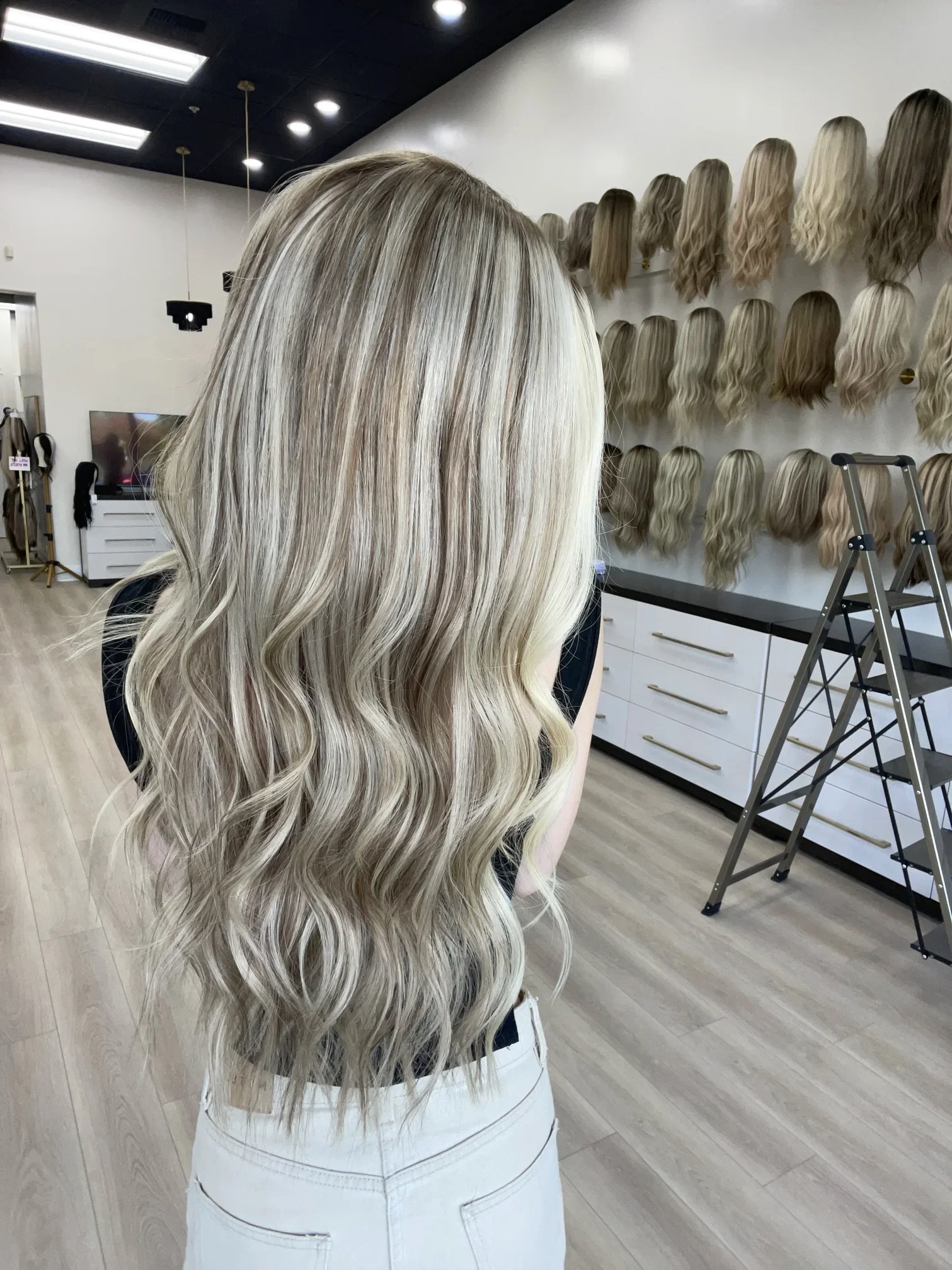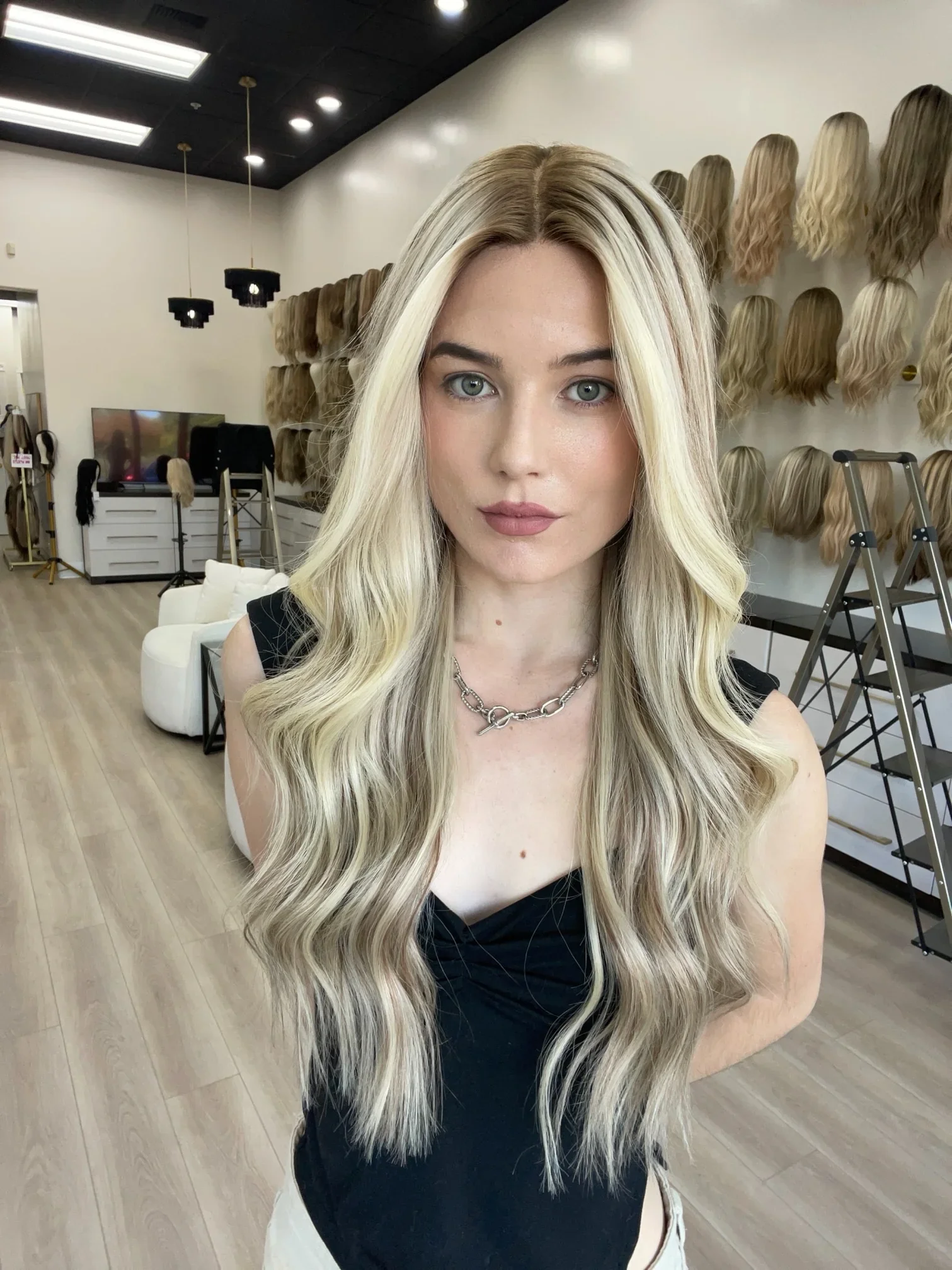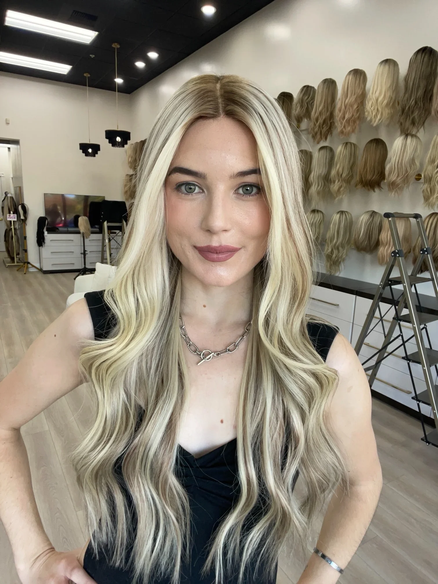 Lightly bleached tiny micro knots ~ Please keep in mind that your wig or topper may or may not have slightly visible knots (see hairline photograph).