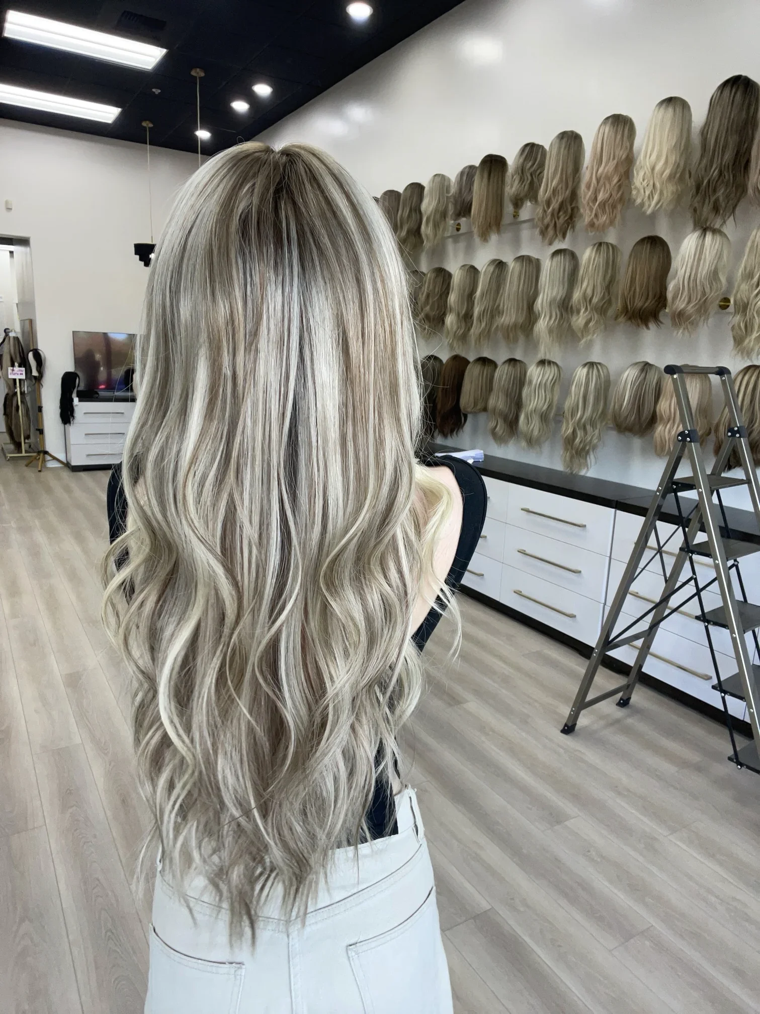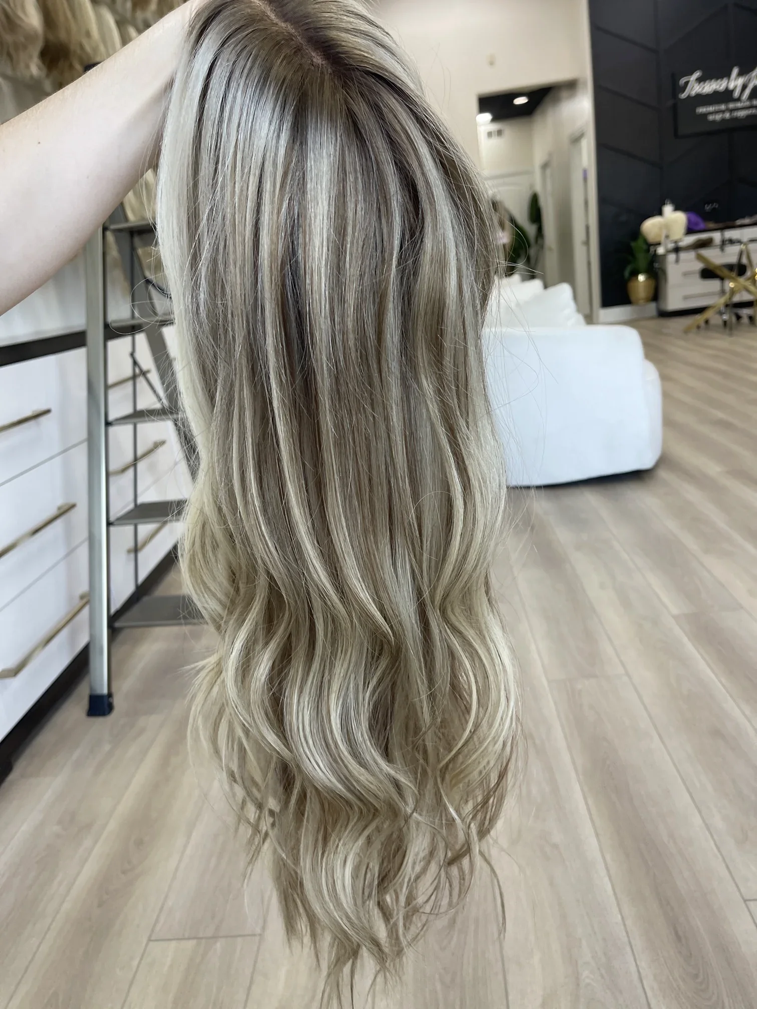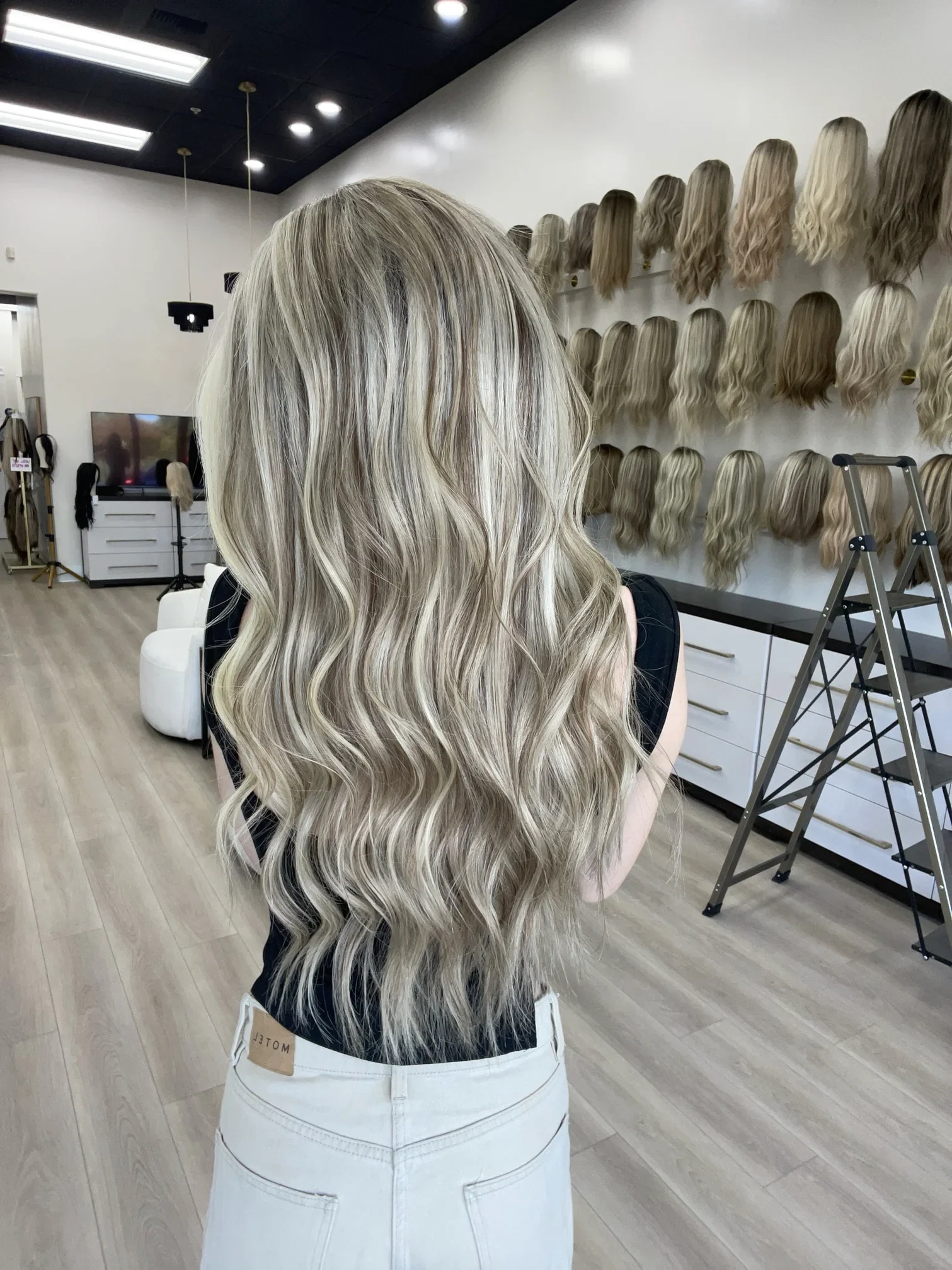 Lightly bleached tiny micro knots ~ Please keep in mind that your wig or topper may or may not have slightly visible knots (see hairline photograph).