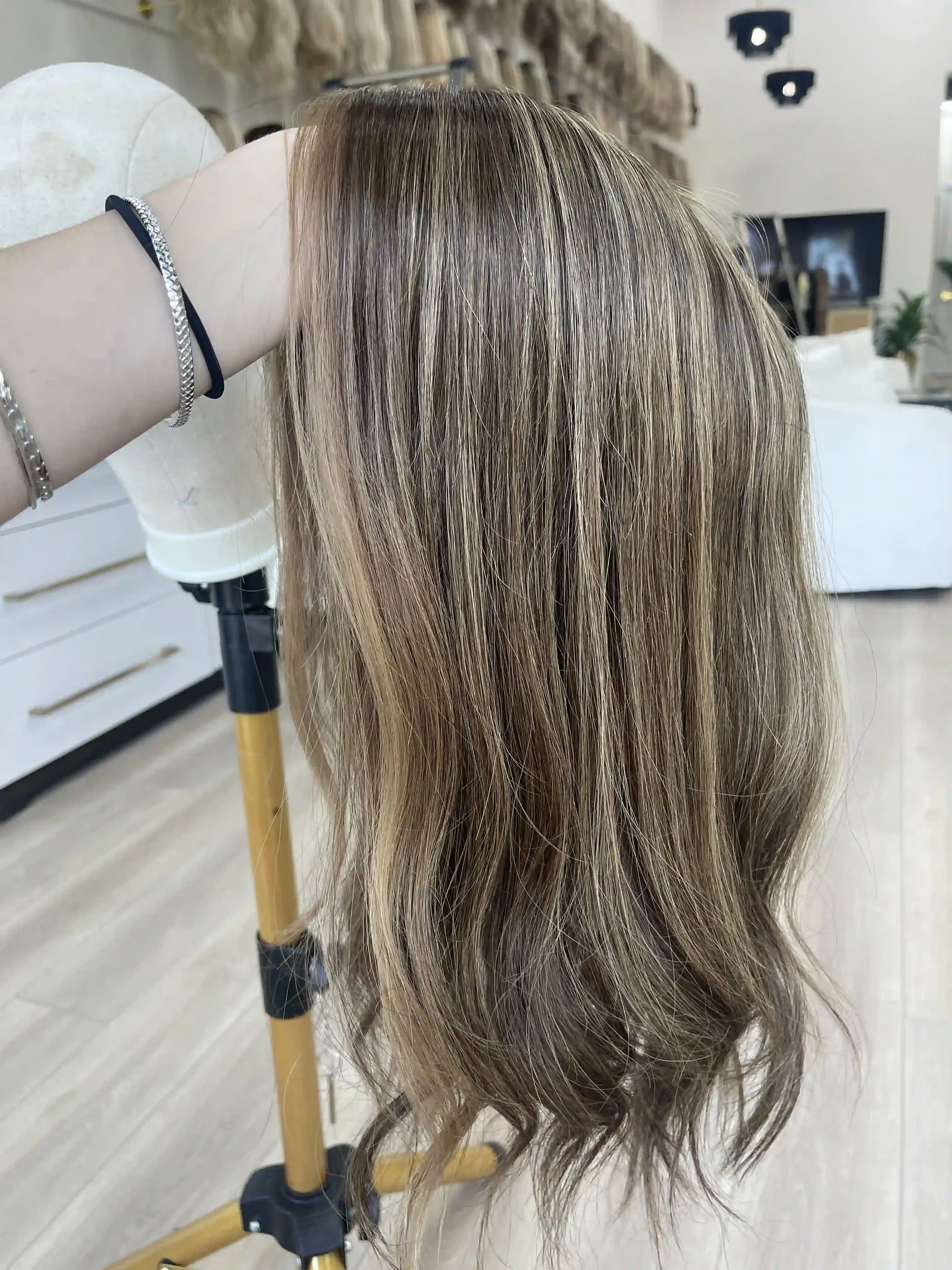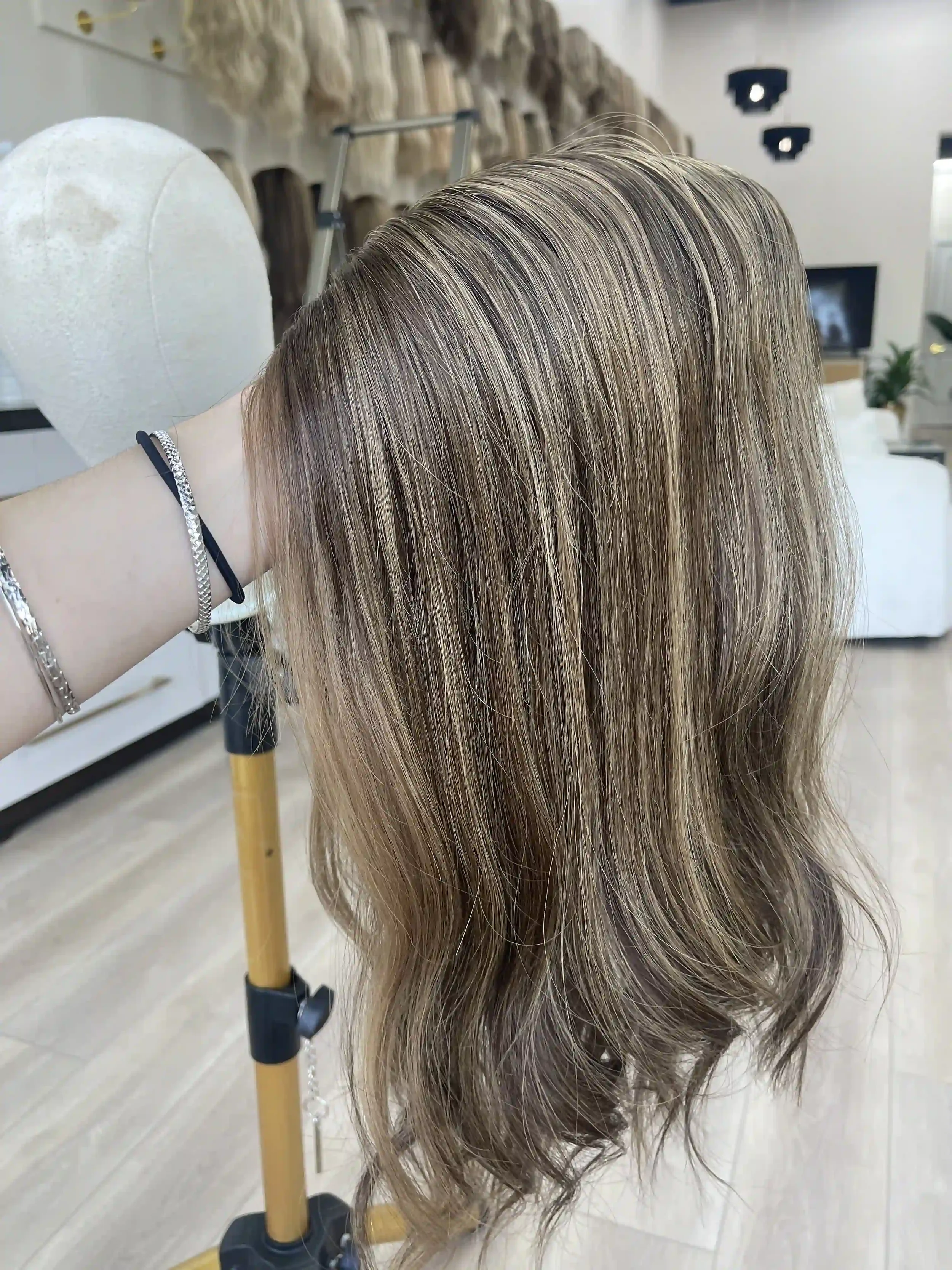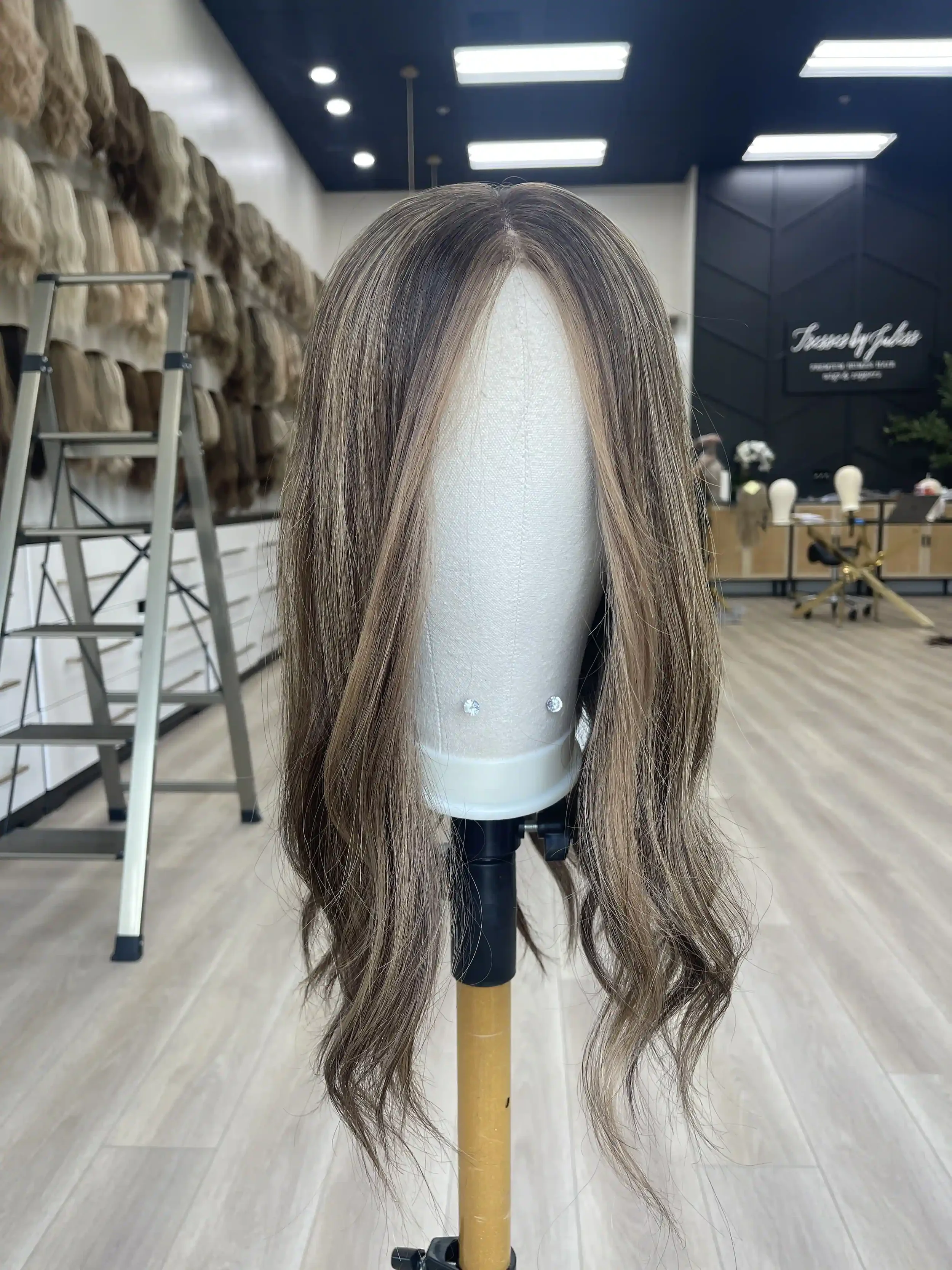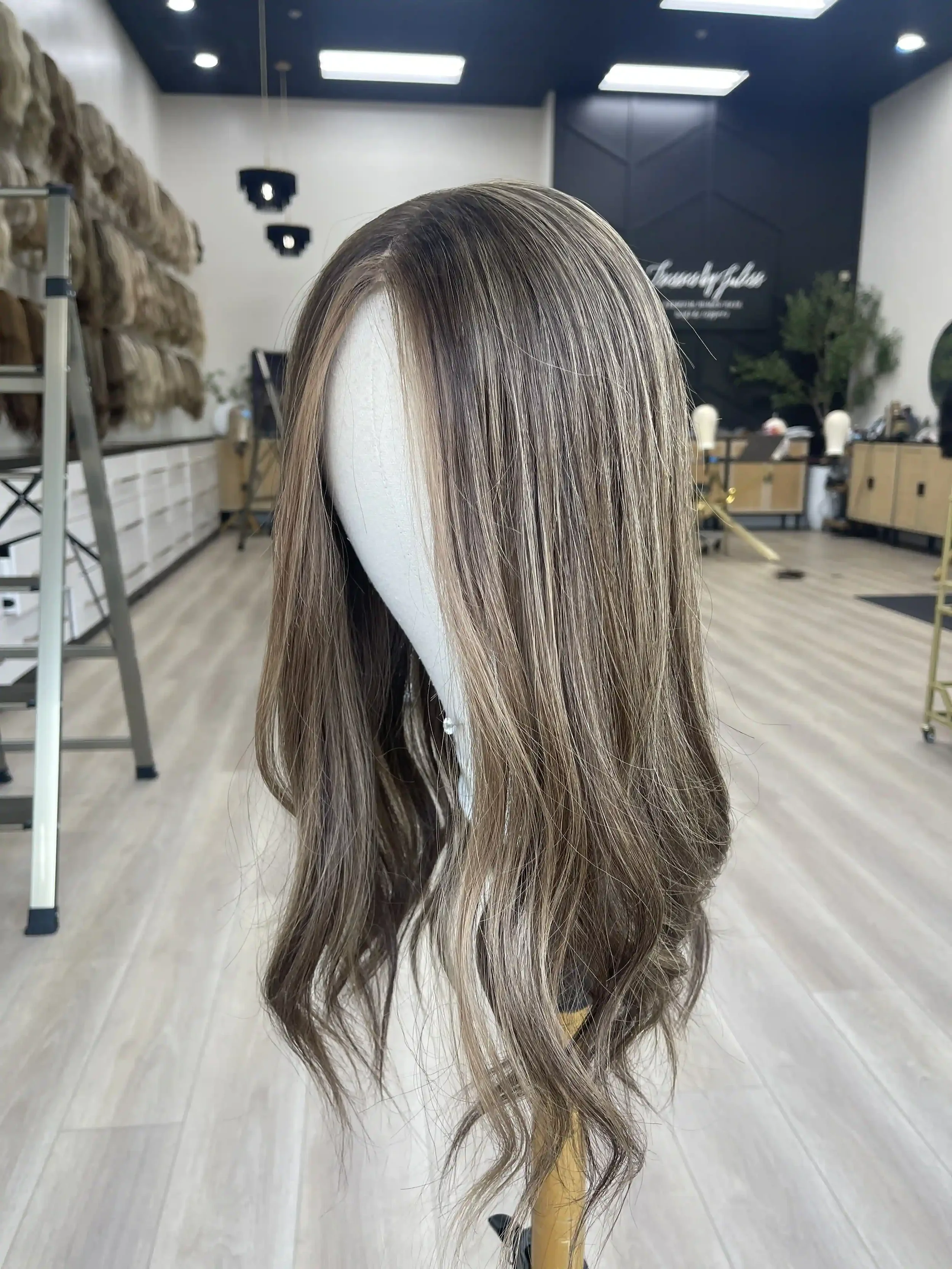 • The hair length of our wigs is measured from the top middle crown on the lace/silk top to the longest ends. For instance, on a 3.5x5 lace front, the measurement is taken 2.5” back from the hairline to the longest ends. Our wigs are custom colored using professional-grade products. It's normal for some color to rinse out during the initial washes. While you can deposit color onto the hair, we advise against lightening it since the hair has already undergone a lifting process to achieve its blonde shade. If you decide to have your wig colored by a stylist, please note that Tresses by Juless (TBJ) will not be held responsible for any potential damage. We recommend only experienced wig colorists for such tasks.