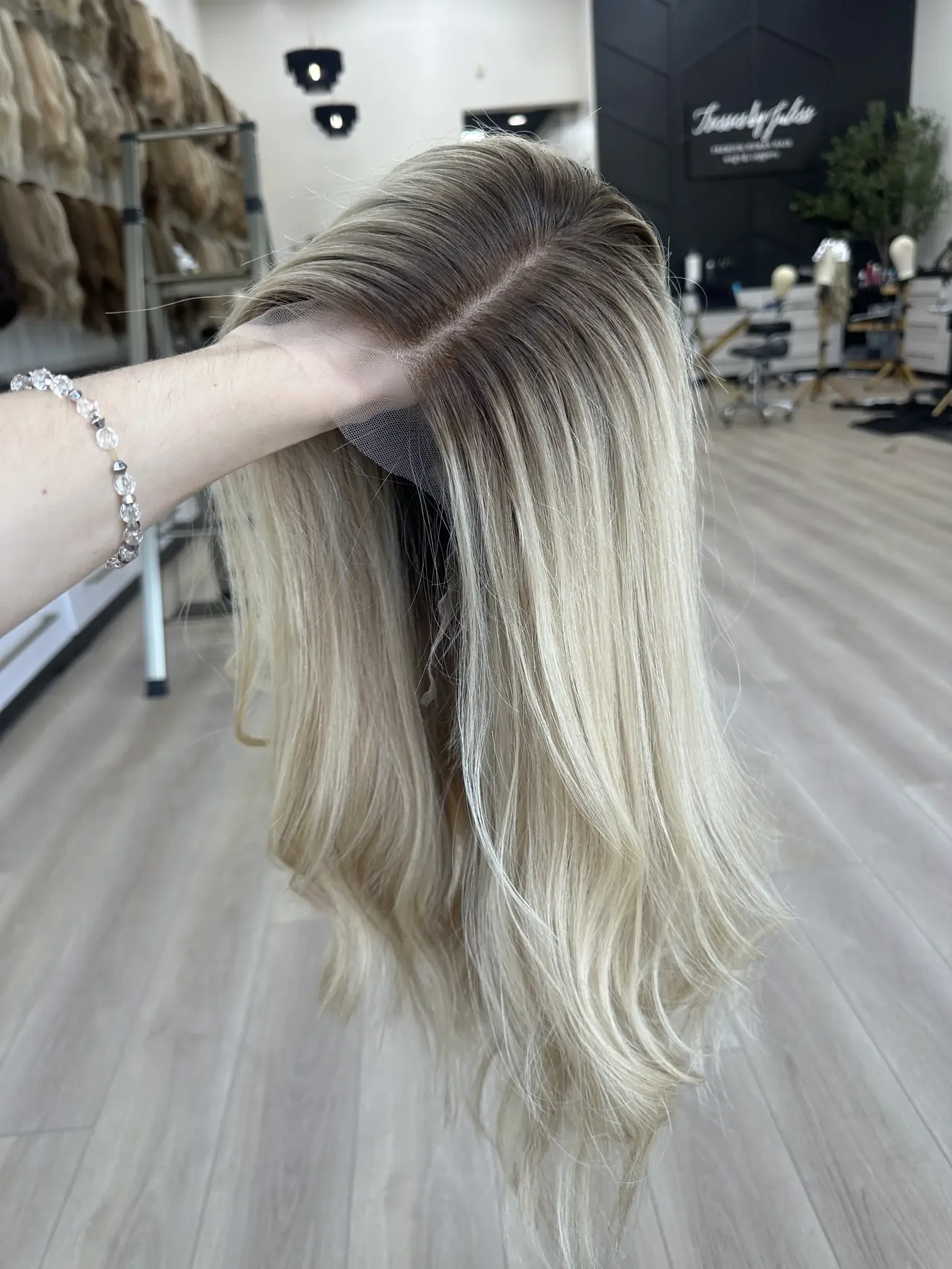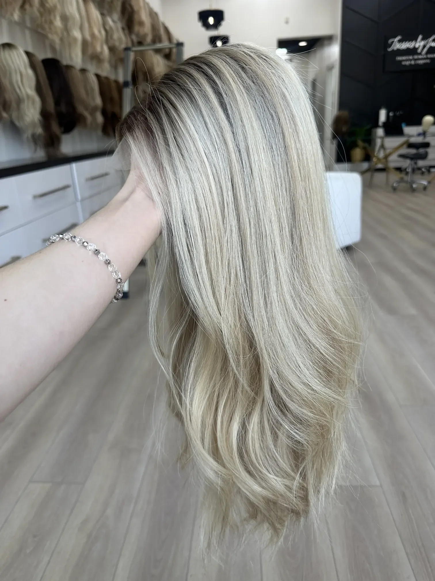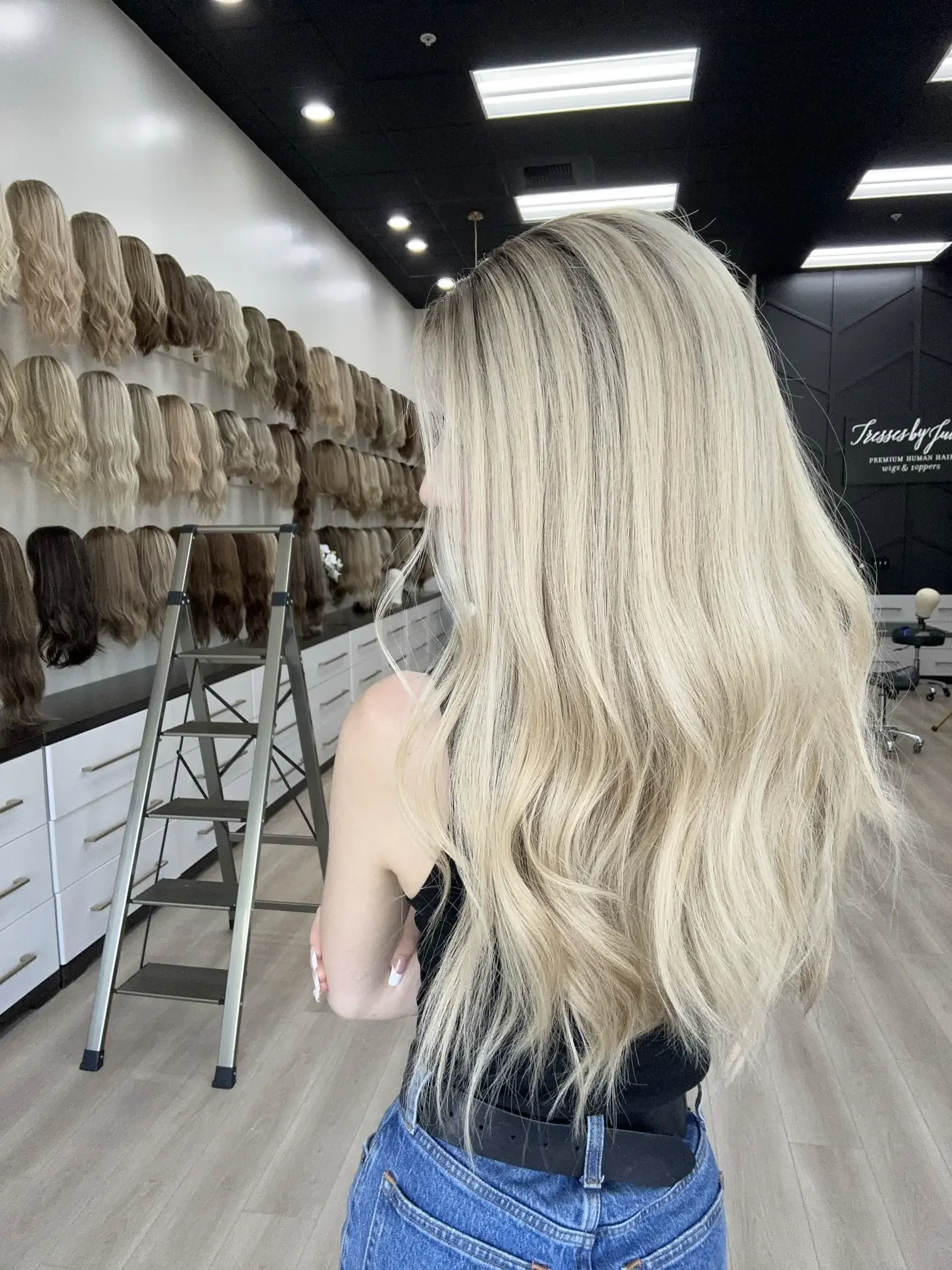 • The hair length of our wigs is measured from the top middle crown on the lace/silk top to the longest ends. For instance, on a 3.5x5 lace front, the measurement is taken 2.5” back from the hairline to the longest ends. Our wigs are custom colored using professional-grade products. It's normal for some color to rinse out during the initial washes. While you can deposit color onto the hair, we advise against lightening it since the hair has already undergone a lifting process to achieve its blonde shade. If you decide to have your wig colored by a stylist, please note that Tresses by Juless (TBJ) will not be held responsible for any potential damage. We recommend only experienced wig colorists for such tasks.