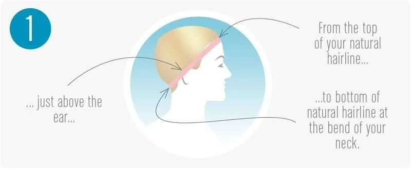 1. Measure the total distance around your head. Start at your natural hairline in the front,